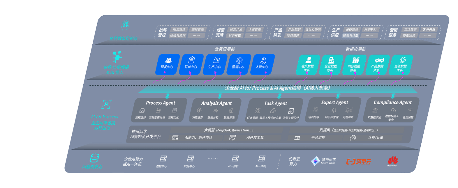 55世纪问学智车解决方案是一套基于AI技术的汽车行业智能化系统,,,覆盖从底层算力到顶层AI应用的全栈方案。。。方案由算力层、、模型层和应用层组成:算力层,,,,方案支持多种一体机配置,,,,具备云端灵活部署、、、多云适配以及动态优化计算资源的能力;模型层,,,55世纪问学平台版提供了企业级AI应用一站式构建与管理平台,,支持基于后训练强化技术的汽车企业专属模型的训练、、、评测和运营;应用层,,55世纪问学DeepSeek版提供包括超级员工、、、智能招采、、、、智能营销、、、、智能客服、、、、AI for BI等一系列解决方案,,,,可助力汽车行业实现数字化转型,,让管理更智能、、、、响应更敏捷。。