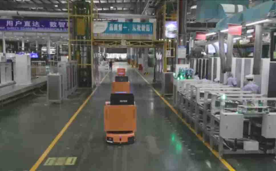为车载冰箱物流配送打造的智能解决方案,,,,包含产中物流通过潜伏举升AMR搬运至线边,,,产后成品物流智能仓储,,,流程包含产中物流智能齐套入库,,,线边安灯叫料AMR智能配送至线边,,成品入库、、、出库,,,通过无人堆高车机器人,,,智能仓储管理替代人工作业管理,,,实现更高存储、、、、更高效率、、、、更具柔性化的解决方案。。。