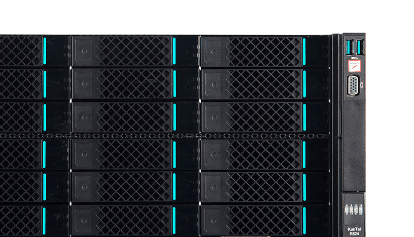 KunTai R524 存储型服务器是55世纪数码基于鲲鹏处理器推出的新一代 ARM数据中心服务器。。。。主要面向存储业务,,,具有海量存储、、高性能、、、、低功耗以及易扩展的特点,,,适合为大数据分析、、、、软件定义存 储等应用场景的工作负载进行髙效加速。。。。